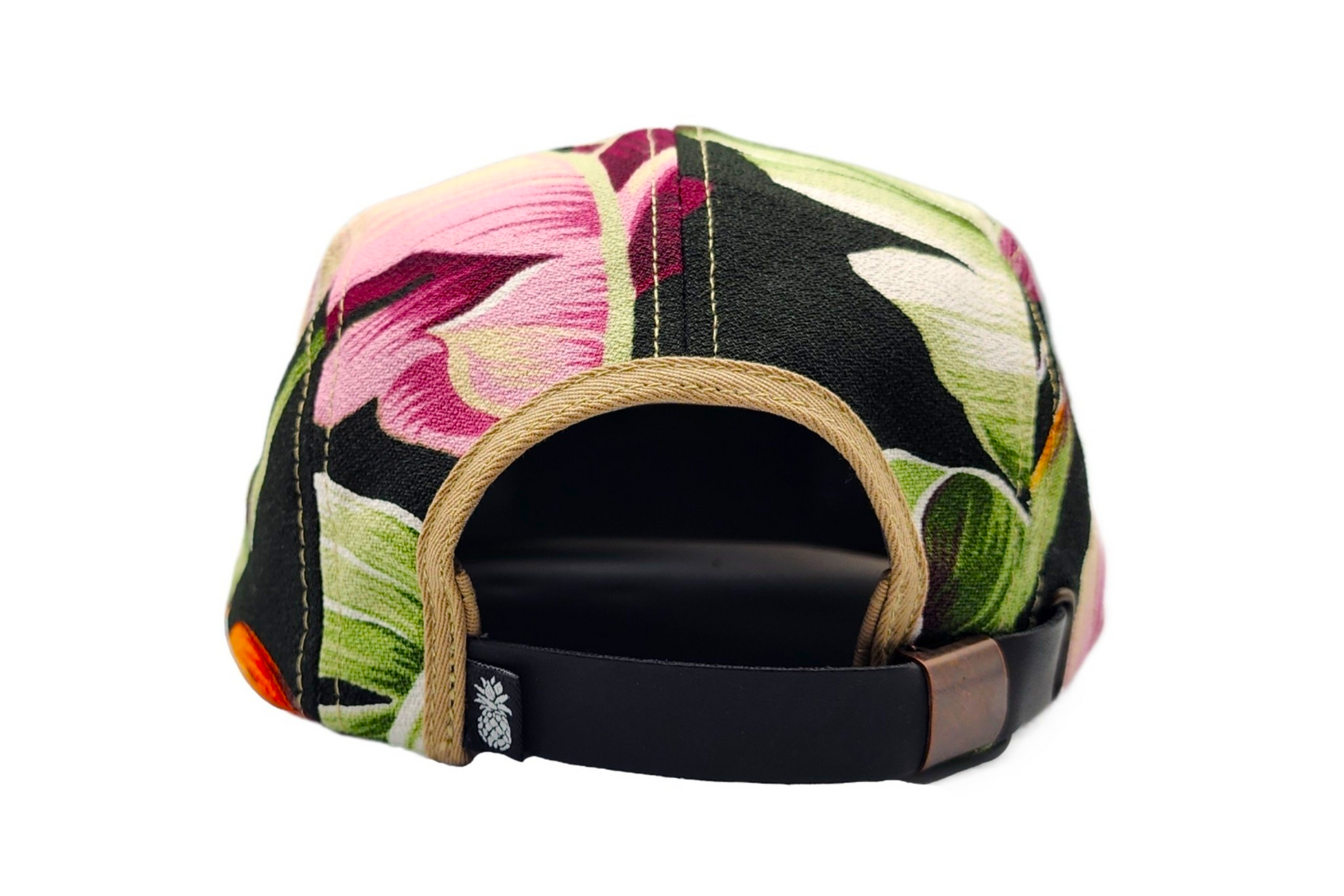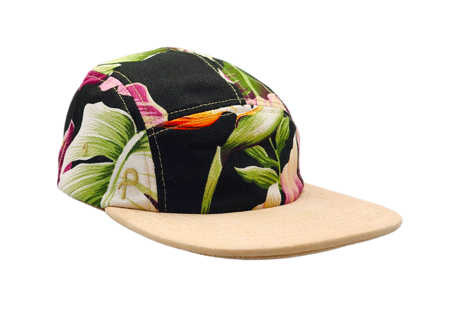 Crafted with care, this handmade 5-panel hat is made from barkcloth we hand-sourced on the island of Maui. Produced by our small, skilled team each hat is slightly different due to the nature of how it is made, ensuring that every piece is truly one of a kind.